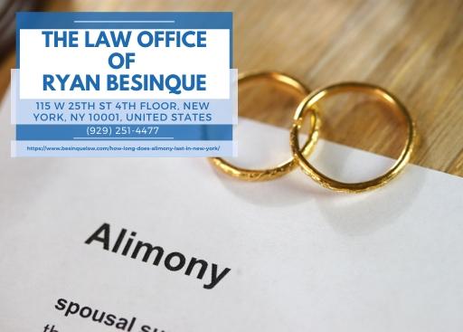 New York, NY - Ryan Besinque of The Law Office of Ryan Besinque (https://www.besinquelaw.com/how-long-does-alimony-last-in-new-york/) is elevating public understanding of New York maintenance through a comprehensive resource led by an NYC spousal support lawyer, detailing how courts evaluate eligibility, calculate duration, and enforce orders. The guidance addresses both temporary and post-divorce maintenance and provides a practical checklist for the financial disclosures courts require in Supreme Court and Family Court proceedings.