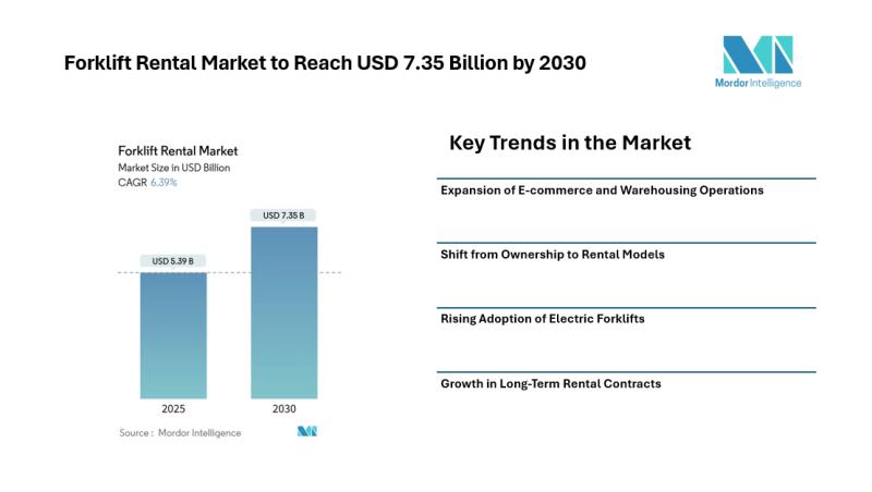 The Forklift Rental Market is witnessing strong and sustained growth, with the market size projected to reach USD 7.35 billion by 2030, up from USD 5.39 billion in 2025, registering a CAGR of 6.39% during the forecast period. Growth is primarily driven by the rapid expansion of e-commerce warehousing, rising demand for flexible material handling solutions, and a growing preference for operational expenditure models over capital-intensive equipment ownership. The…