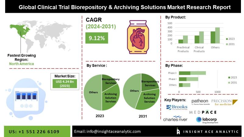 InsightAce Analytic Pvt. Ltd. announces the release of a market assessment report on the "Global Clinical Trial Biorepository & Archiving Solutions Market- (By Service (Archiving Solution, Biorepository Services), By Product (Preclinical, Clinical), By Phase (I, II, III,IV)), By Region, Trends, Industry Competition Analysis, Revenue and Forecast To 2031."