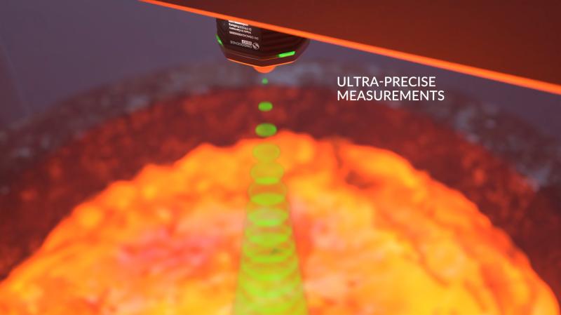 The OndoSense apex Level Line 's application spectrum ranges from level monitoring of molten metal in slab casting, in ladles, ladle cars, launder systems, melting furnaces and crucibles to throughput measurements on conveyor belts and level or volume measurements of bulk material stockpiles in mining.