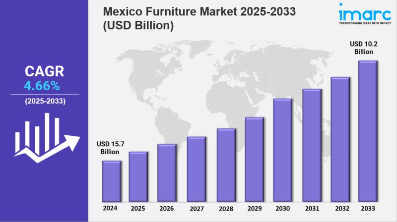 IMARC Group has recently released a new research study titled "Mexico Furniture Market Report by Material (Metal, Wood, Plastic, Glass, and Others), Distribution Channel (Supermarkets and Hypermarkets, Specialty Stores, Online Stores, and Others), End Use (Residential, Commercial), and Region 2025-2033," which offers a detailed analysis of the market drivers, segmentation, growth opportunities, trends, and competitive landscape to understand the current and future market scenarios.