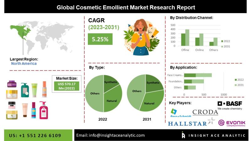InsightAce Analytic Pvt. Ltd. announces the release of a market assessment report on the "Global Cosmetic Emollient Market Size, Share & Trends Analysis Report By Application (Foundation Creams, Face Creams & Moisturizers, Body Creams & Lotions, Sunscreens, and Others), Type (Synthetic and Natural), Distribution Channel (Offline and Online) - Market Outlook And Industry Analysis 2031"