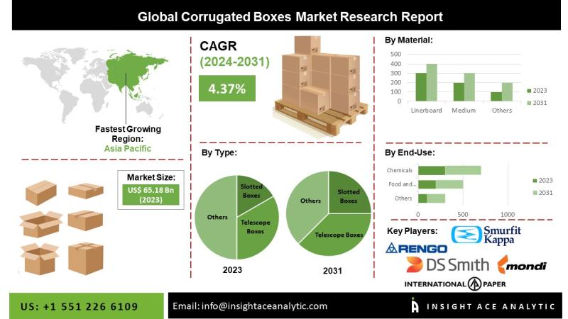 InsightAce Analytic Pvt. Ltd. announces the release of a market assessment report on the "Global Corrugated Boxes Market Size, Share & Trends Analysis Report By Material (Linerboard, Medium), Printing Ink( Water-based, UV-curable, Hot melt-based, Solvent-Based), Printing Technology (Digital, Flexography, Lithography), Type (Slotted Boxes, Telescope Boxes, Rigid Boxes, And Folder Boxes), End-Use Industry (Food & Beverages, Electronic Goods, Home & Personal Care, Chemicals, Textile, Glassware & Ceramics, Paper Products)- Market Outlook…