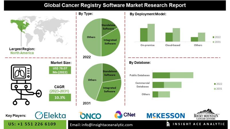 InsightAce Analytic Pvt. Ltd. announces the release of a market assessment report on the "Global Cancer Registry Software Market- (By Software Type (Standalone Software, Integrated Software), By Database (Public data, Commercial data), By Deployment Model (Cloud-based, On-premises), By Functionality (Cancer reporting to meet federal regulations, Patient care management, Product outcome evaluation, Medical research and clinical studies), By End-User (Government organisation and third-party administrator, Hospitals and medical practices, Research centres, Pharmaceutical,…