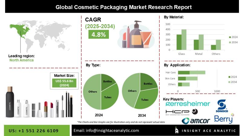 InsightAce Analytic Pvt. Ltd. announces the release of a market assessment report on the "Global Cosmetic Packaging Market Size, Share & Trends Analysis Report By Material (Glass, Metal, Rigid Plastic, Paper-Based, Flexible Packaging), Application (Skin Care, Hair Care, Oral Care, Sun Care, Color Cosmetic, Fragrance & Perfume), By Type (Bottles, Tubes, Jars, Containers, Blister, Aerosol Cans, Folding Cartons, Flexible Plastics)- Market Outlook And Industry Analysis 2034"