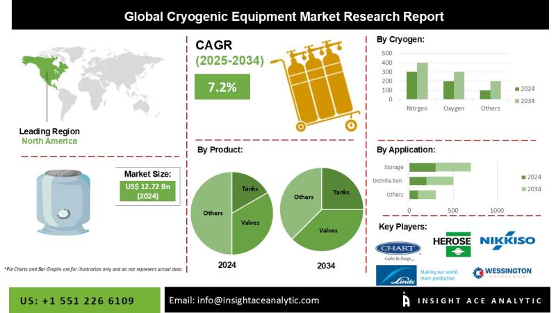 InsightAce Analytic Pvt. Ltd. announces the release of a market assessment report on the "Global Cryogenic Equipment Market Size, Share & Trends Analysis Report By By Product (Tanks, Valves, Pumps & Vaporizers, Vacuum Jacket Piping (VJP) ), By Cryogen (Nitrogen, Oxygen, Argon, And Liquefied Natural Gas), By Application (Distribution And Storage), By End-Use (Oil & Gas, Metallurgy, Automotive, Food & Beverage, And Chemical)- Market Outlook And Industry Analysis 2034"