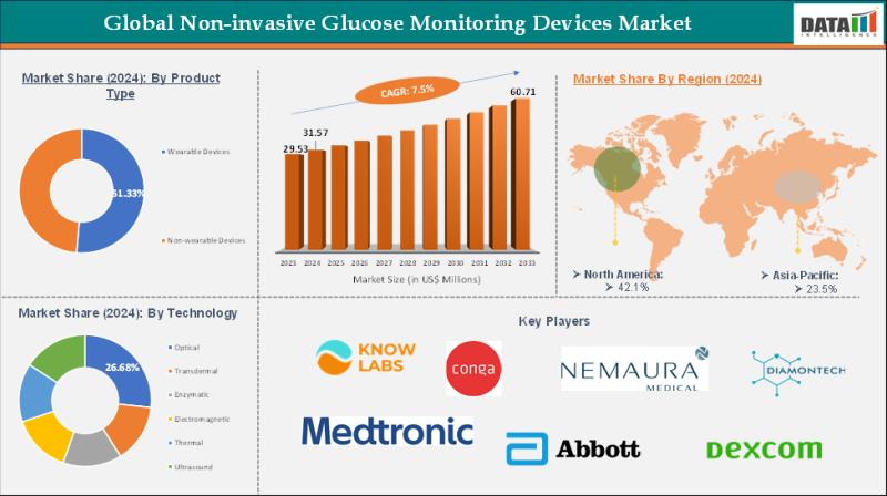 As per DataM Intelligence research report " global non-invasive glucose monitoring devices market reached US$ 29.53 Million in 2023, with a rise of US$ 31.57 Million in 2024 and is expected to reach US$ 60.71 Million by 2033, growing at a CAGR of 7.5% from 2025 to 2033." Rising global diabetes prevalence, patient preference for pain-free needle-free technologies, advancements in sensor and wearable innovations,…