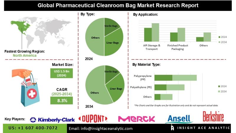InsightAce Analytic Pvt. Ltd. announces the release of a market assessment report on the "Global Pharmaceutical Cleanroom Bag Market Size, Share & Trends Analysis Report By Type (Liner Bags, Sterile Bags, and Zipper Bags), By Material Type (Nylon, Polyethylene (PE), Polypropylene (PP), and Others), By Application (API Storage & Transport, Finished Product Packaging, Waste Disposal, and Equipment Covers),-Market Outlook And Industry Analysis 2034"