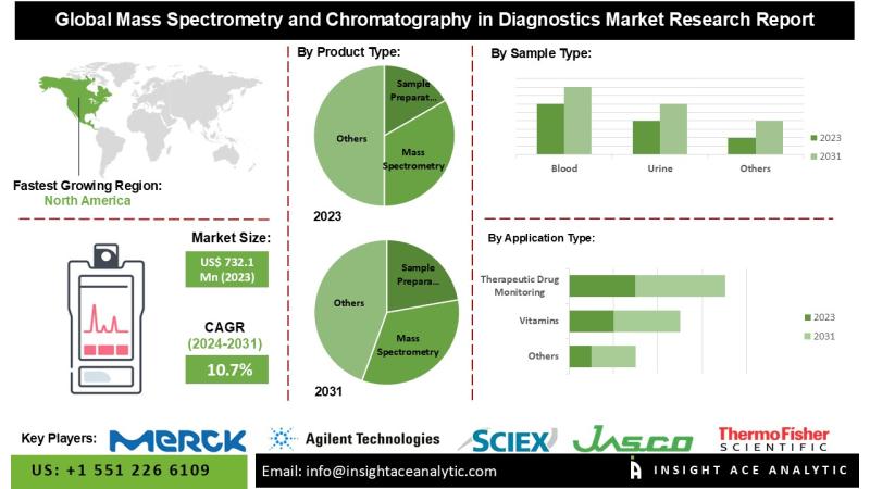 InsightAce Analytic Pvt. Ltd. announces the release of a market assessment report on the "Mass Spectrometry and Chromatography in Diagnostics Market"-, By Product Type(Sample Preparation, Mass Spectrometry, and Chromatography), By Application Type (Therapeutic Drug Monitoring, Vitamins, Hormones, Methylmalonic Acid, Immunosuppressants, Others), By Sample Type (Blood, Urine, Serum, Plasma, Saliva), By Testing Type (Laboratory-Developed Tests, Commercial Assays), Industry Trends, and Global Forecasts, 2024-2031 And Segment Revenue and Forecast To 2031."