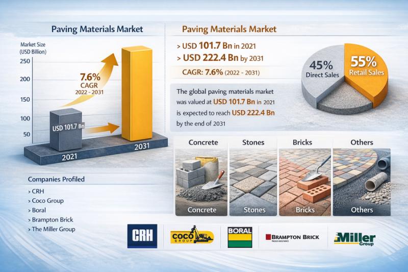 Paving Materials Market to Reach USD 222.4 Billion by 2031, Expanding at 7.6% CA …