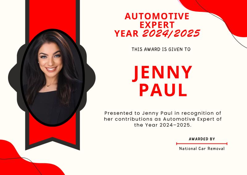 Jenny Paul Named Automotive Expert of the Year 2024-2025 by National Car Removal