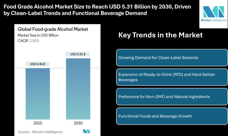 Food Grade Alcohol Market Size to Reach USD 5.31 Billion by 2030, Driven by Clean-Label Trends and Functional Beverage Demand