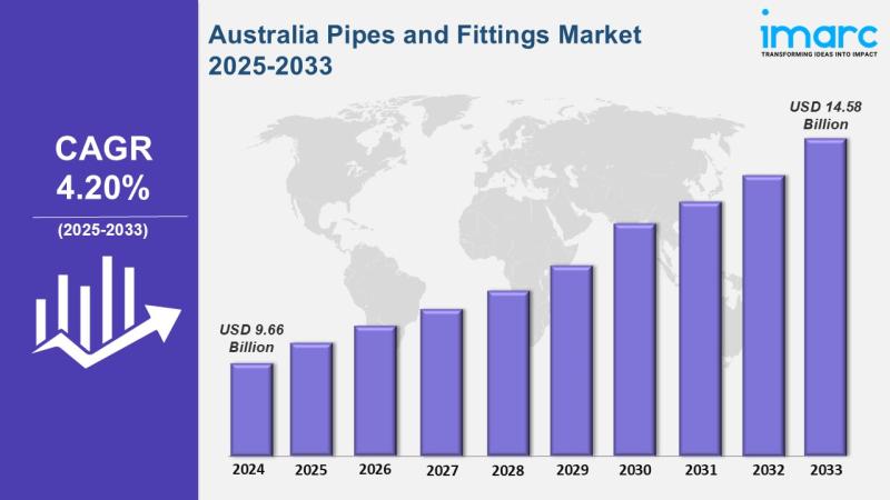 The latest report by IMARC Group, titled "Australia Pipes and Fittings Market: Industry Trends, Share, Size, Growth, Opportunity and Forecast 2025-2033," offers a comprehensive analysis of the Australia pipes and fittings market growth. The report also includes competitor and regional analysis, along with a breakdown of segments within the industry. The Australia pipes and fittings market size reached USD 9.66 Billion in 2024. Looking forward, IMARC Group expects the market to reach USD 14.58 Billion by 2033, exhibiting a growth rate (CAGR) of 4.20% during 2025-2033.Report Attributes: