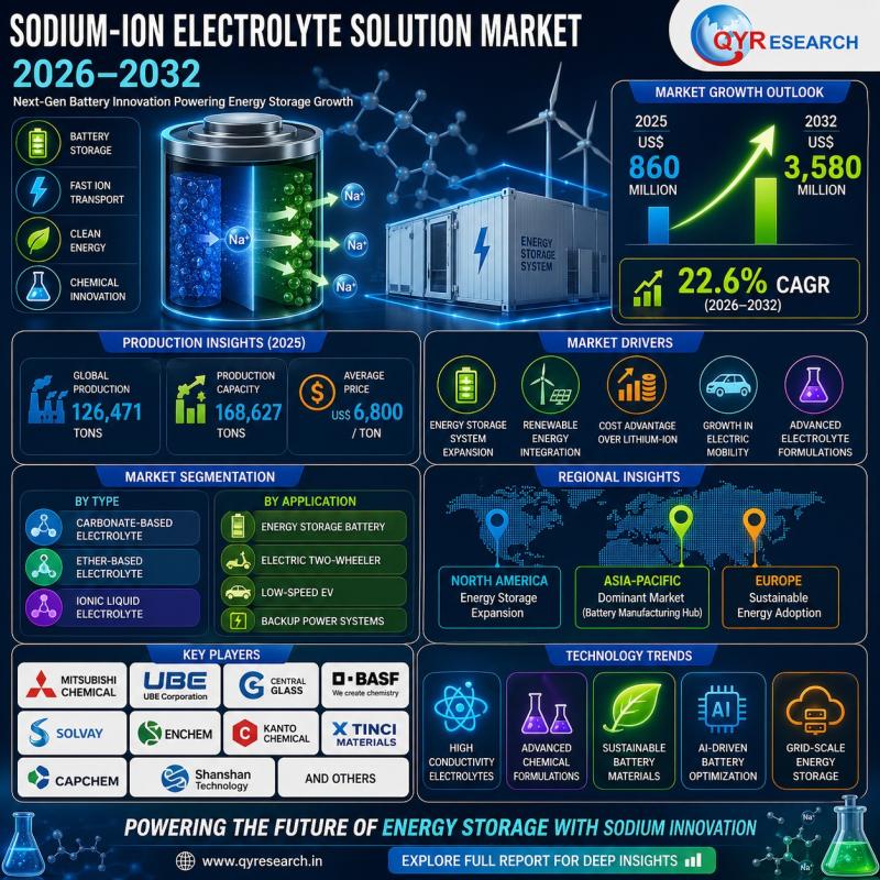 According to a newly published report by QY Research, the global Sodium-Ion Electrolyte Solution Market 2026 delivers a comprehensive and data-driven analysis designed to enhance business decision-making and unlock high-growth opportunities across industries.