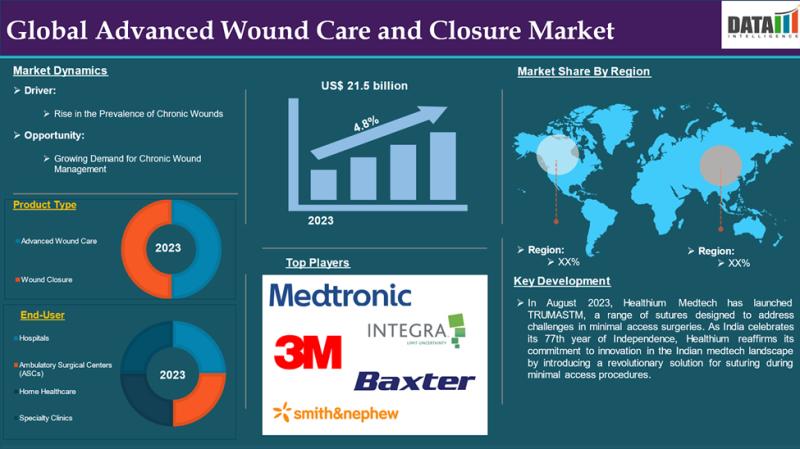 Tokyo-Japan- The Advanced Wound Care and Closure Market reached US$ 21.5 billion in 2023 and is expected to reach US$ 34.5 billion by 2033, growing at a CAGR of 4.8% during the forecast period 2025-2033.