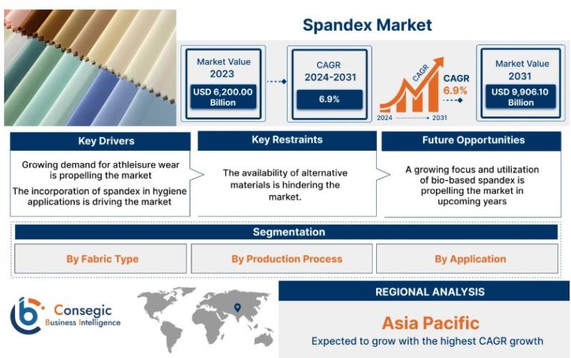 A: The spandex market is projected to grow at a CAGR of 6.9% during the forecast period (2024-2031).