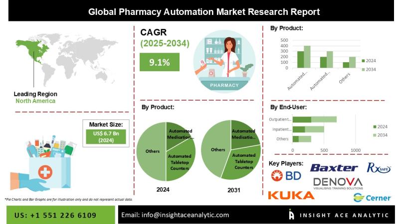 "Pharmacy Automation Market" in terms of revenue was estimated to be worth $ 6.7 Bn in 2024 and is poised to reach $ 15.86 Bn by 2034, growing at a CAGR of 9.1% from 2025 to 2034 according to a new report by InsightAce Analytic.