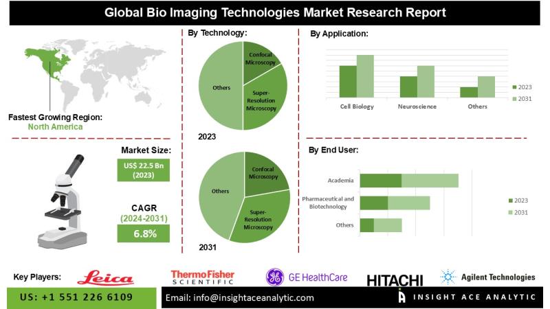 InsightAce Analytic Pvt. Ltd. announces the release of a market assessment report on the "Bio Imaging Technologies Market"-, By Technology (Confocal Microscopy, Super-Resolution Microscopy, Electron Microscopy, Multiphoton Microscopy), By Application (Cell Biology, Neuroscience, Developmental Biology, Cancer Research), By Sample Type (Live Cells, Fixed Cells, Tissues, Three-Dimensional (3D) Samples), By End User (Academia, Pharmaceutical and Biotechnology, Medical Diagnostics, Industrial), and Global Forecasts, 2024-2031