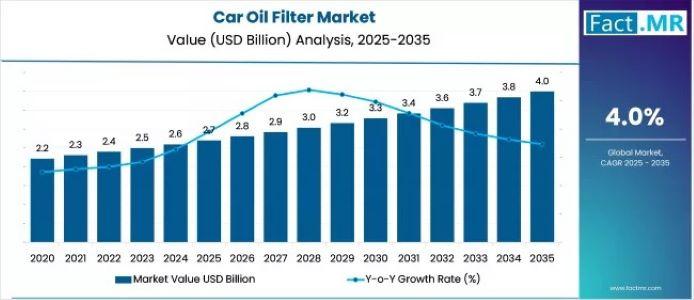 The global car oil filter market is set to witness steady and resilient growth from 2026 to 2036, supported by rising vehicle parc, increasing focus on preventive vehicle maintenance, and continuous advancements in filtration technologies. According to industry-aligned insights consistent with Fact.MR analysis, car oil filters remain a critical component in ensuring engine efficiency, longevity, and emission control across passenger and light commercial vehicles worldwide. Car oil filters-used to remove contaminants