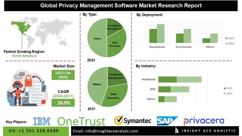 InsightAce Analytic Pvt. Ltd. announces the release of a market assessment report on the "Privacy Management Software Market"-, By Type (Compliance Management, Data Discovery, Incident Management, and Risk Assessment), By Deployment (Cloud-based and On-premises), By Industry (Healthcare, BFSI, Government, Retail & e-Commerce, and IT & Telecommunication), and Global Forecasts, 2024-2031 And Segment Revenue and Forecast To 2031." The Privacy Management Software Market is estimated to reach over USD 15.08 billion