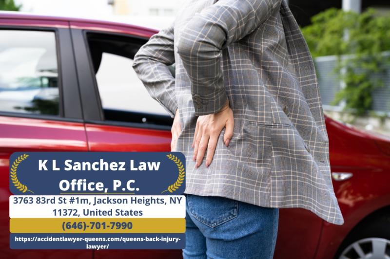 A back injury can disrupt every part of a person's life-physically, emotionally, and financially. At K L Sanchez Law Office, P.C., Queens back injury lawyer Keetick L. Sanchez (https://accidentlawyer-queens.com/queens-back-injury-lawyer/) offers legal support to individuals suffering from these life-altering injuries. Whether caused by a car accident, a workplace incident, or a slip and fall, back injuries often demand extensive care and recovery time, and those affected may be entitled to compensation under New York law.As a Queens back injury lawyer, Keetick L. Sanchez brings a practical and determined approach to helping clients manage the complex claims process. She works with individuals and families who are navigating overwhelming medical bills and lost wages. "Our team is here to support you and stand up for your rights," Sanchez states in the article. Her firm is dedicated to handling everything from collecting documentation to negotiating with insurance companies so that clients can focus on healing.