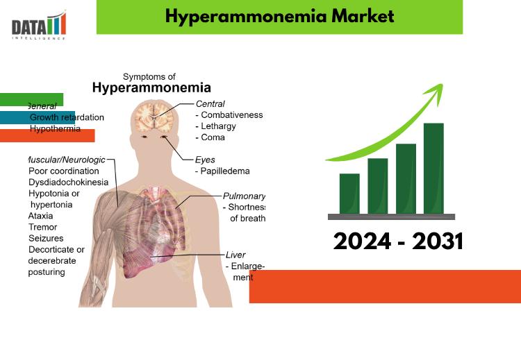 Global Hyperammonemia Market reached US$1500 million in 2024 and is expected to reach US$2068.79 million by 2031, growing at a CAGR of 4.7% during the forecast period 2024-2031.The Hyperammonemia Market report by DataM Intelligence provides comprehensive insights and analysis on key market trends, growth opportunities, and emerging challenges. With a commitment to delivering actionable intelligence, DataM Intelligence empowers businesses to make informed decisions and stay ahead of the competition. By combining qualitative and quantitative research methodologies, the firm delivers in-depth reports that help clients navigate complex market dynamics, drive strategic growth, and seize new opportunities in an ever-evolving global landscape.