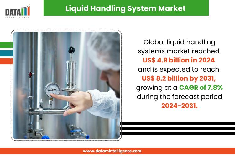 "Global liquid handling systems market reached US$ 4.9 billion in 2024 and is expected to reach US$ 8.2 billion by 2031, growing at a CAGR of 7.8% during the forecast period 2024-2031." As per DataM intelligence research reportThe Liquid Handling System Market report by DataM Intelligence provides comprehensive insights and analysis on key market trends, growth opportunities, and emerging challenges. With a commitment to delivering actionable intelligence, DataM Intelligence empowers businesses to make informed decisions and stay ahead of the competition. By combining qualitative and quantitative research methodologies, the firm delivers in-depth reports that help clients navigate complex market dynamics, drive strategic growth, and seize new opportunities in an ever-evolving global landscape.