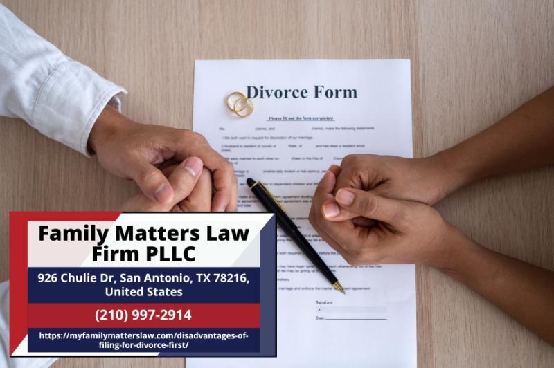 San Antonio, Texas - Family Matters Law Firm PLLC (https://myfamilymatterslaw.com/disadvantages-of-filing-for-divorce-first/) announces that San Antonio divorce and family lawyer Linda Leeser is sharing practical guidance for residents weighing whether to file for divorce first in Texas. Drawing on current Texas procedures, the overview explains how initiating a case can affect legal strategy, timelines, costs, and family dynamics while underscoring options available to protect children and finances during the process. In the guidance,