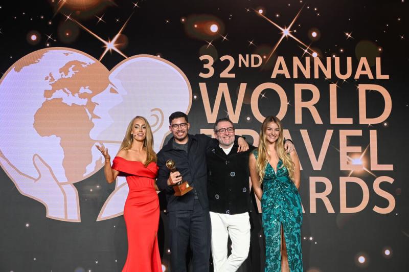 Josef Omarsson (Sales Manager) and Einar Davidsson (Business Development Manager) at Guide to Iceland accept the award for Iceland's Leading Travel Agency at the 32nd Annual World Travel Awards.
