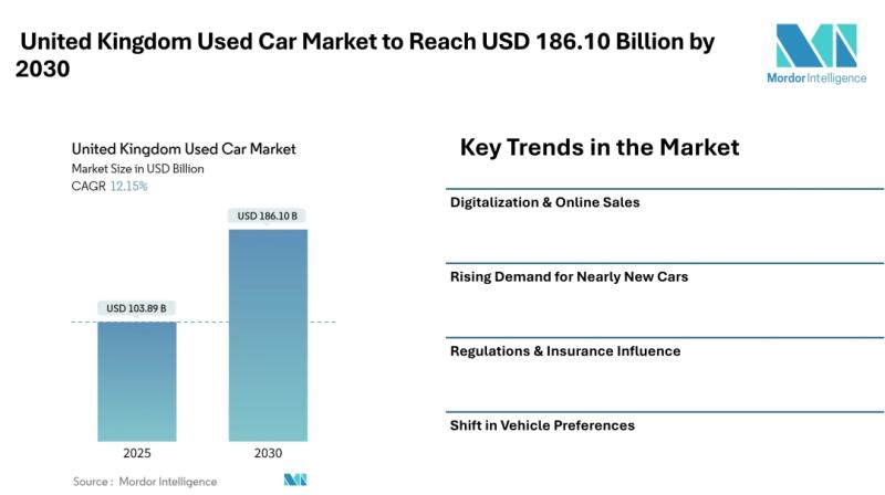 The United Kingdom Used Car Market [https://www.mordorintelligence.com/industry-reports/unitedkingdom-used-car-market?utm_source=abnewswire] is valued at USD 103.89 billion in 2025 and is set to reach USD 186.10 billion by 2030, advancing at an 12.15% CAGR. This represents a compound annual growth rate (CAGR) of 12.15% during the forecast period. The growth is…
