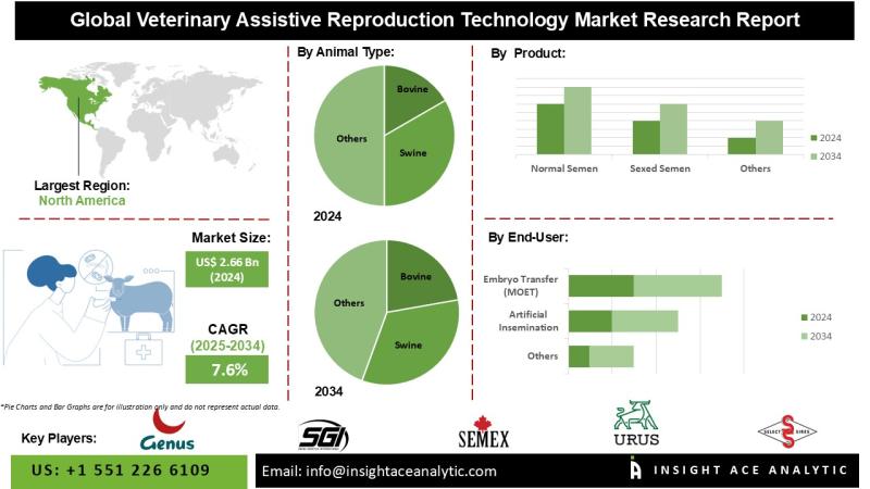 InsightAce Analytic Pvt. Ltd. announces the release of a market assessment report on the "Global Veterinary Assistive Reproduction Technology Market - (By Animal Type (Bovine, Swine, Ovine, Caprine, Equine, Other Animals), By Product (Normal Semen, Sexed Semen), By Distribution Channel (Private, Public), By Conception Method (Artificial Insemination, Embryo Transfer (MOET), IVF)), Trends, Industry Competition Analysis, Revenue and Forecast To 2034."