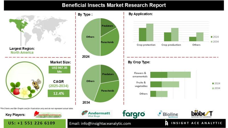 InsightAce Analytic Pvt. Ltd. announces the release of a market assessment report on the "Global Beneficial Insects Market Size, Share & Trends Analysis Report By Application (Crop protection, Crop production), Type (Predators, Parasitoids, Pathogens, and Pollinators), Crop Type (Fruits & Vegetables, Flowers & Ornamentals, and Grains & Pulses), Region, Market Outlook And Industry Analysis 2034"