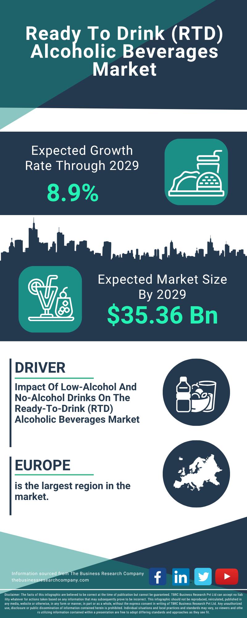The ready-to-drink (RTD) alcoholic beverages sector is on track for remarkable expansion as consumer preferences evolve and demand for convenience increases. This market is being shaped by innovations in product quality, health trends, and diverse flavor options, setting the stage for a dynamic period of growth over the next several years. Forecast for Ready to Drink Alcoholic Beverages Market Size by 2029 The RTD alcoholic beverages market is projected to
