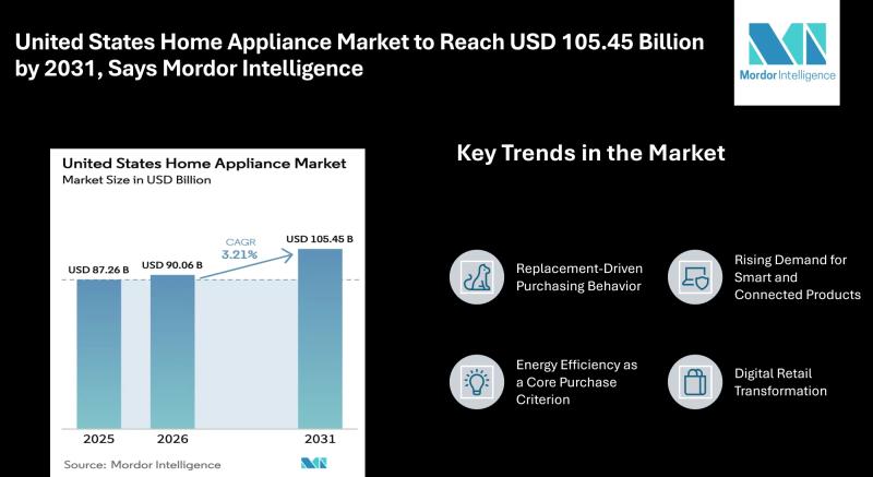 According to Mordor Intelligence, the United States home appliance market size is projected to expand from USD 87.26 billion in 2025 to USD 90.06 billion in 2026, reaching USD 105.45 billion by 2031 at a CAGR of 3.21%. This…