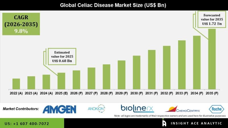 InsightAce Analytic Pvt. Ltd. announces the release of a market assessment report on the "Global Celiac Disease Market Size, Share & Trends Analysis Report By Treatments (Infliximab, Larazotide Acetate, Gluten Free Diet), Route Of Administration (Oral And Parenteral), End-Users (Hospitals, Homecare), And Distribution Channels (Hospital Pharmacy, Online Pharmacy, And Retail Pharmacy), Region, Market Outlook And Industry Analysis 2035"