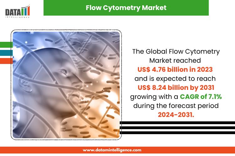 "The Global Flow Cytometry Market reached US$ 4.76 billion in 2023 and is expected to reach US$ 8.24 billion by 2031 growing with a CAGR of 7.1% during the forecast period 2024-2031." As per DataM intelligence research reportMarket growth opportunities(2025-2031):