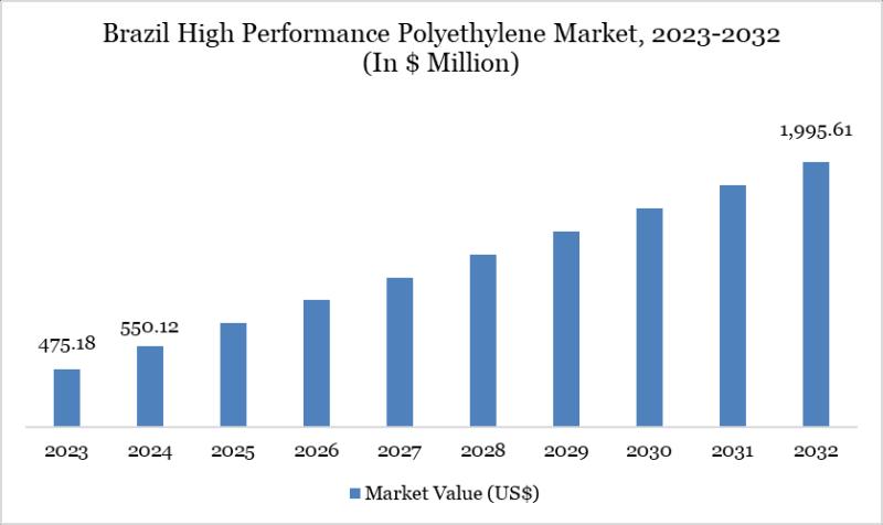Brazil High-Performance Polyethylene Market reached US$ 550.12 million in 2024 and is expected to reach US$ 1,995.61 million by 2032, growing with a CAGR of 4.80% during the forecast period 2025-2032.