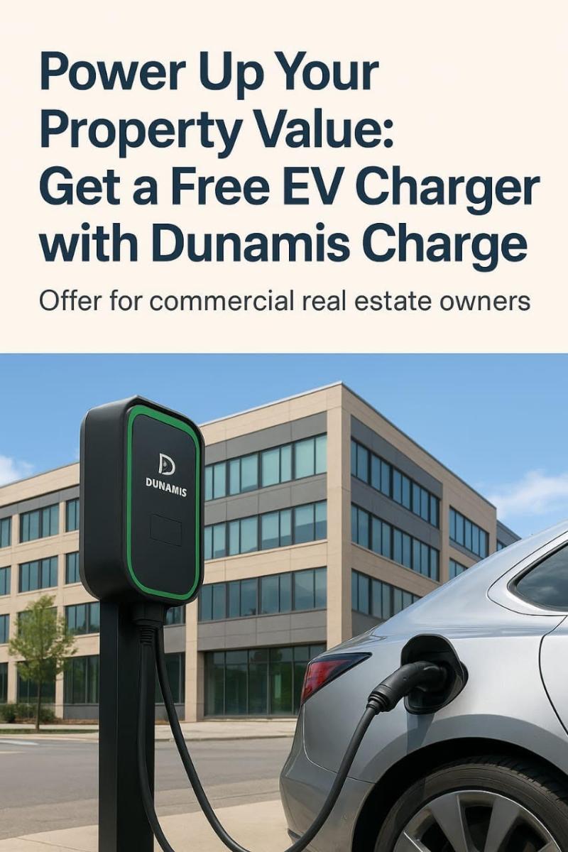 In today's fast-paced world, electric vehicles aren't just the future; they're the present. Commercial properties that offer EV charging stations are already attracting more tenants, customers, and foot traffic than ever before. Now, Dunamis Charge is making it easier (and more affordable) than you ever imagined.The Offer: A Free Commercial-Grade EV Charger for Property Owners