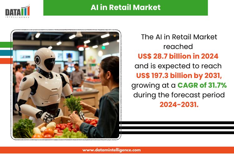 "The AI in Retail Market reached US$ 28.7 billion in 2024 and is expected to reach US$ 197.3 billion by 2031, growing at a CAGR of 31.7% during the forecast period 2024-2031." As per DataM intelligence research reportDownload your exclusive sample report today: (corporate email gets priority access): https://www.datamintelligence.com/download-sample/ai-in-retail-market?sp