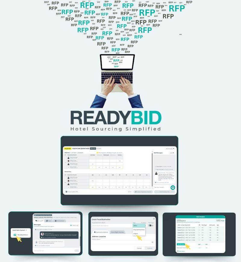 ReadyBid, the leader in automated hotel RFP solutions, is setting a new benchmark for business travel management with its comprehensive platform designed to take travel procurement from initial hotel sourcing to measurable savings.With its easy-to-use interface, ReadyBid helps travel managers bid on hotels more strategically, secure competitive rates, and maintain compliance without the need for endless spreadsheets or email chains.