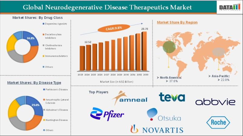Neurodegenerative Disease Therapeutics Market reached US$ 12.52 billion in 2024 and is projected to expand to US$ 28.78 billion by 2033, growing at a CAGR of 9.8% during the forecast period 2025-2033. The market is experiencing robust growth driven by the rising global burden of neurodegenerative disorders such as Alzheimer's disease, Parkinson's disease, Huntington's disease, amyotrophic lateral sclerosis (ALS), and multiple sclerosis. Rapid population aging, increasing life expectancy, and improved…