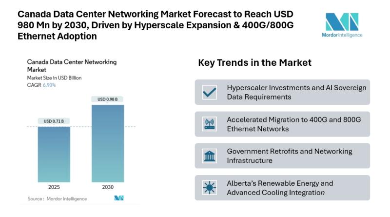 The Canada data center networking market [https://www.mordorintelligence.com/industry-reports/canada-data-center-networking-market?utm_source=abnewswire] stands at USD 710 million in 2025 and is forecast to reach USD 980 million by 2030, expanding at a 6.9% CAGR.The market landscape is characterized by a mix of colocation facilities and liquid-cooled…