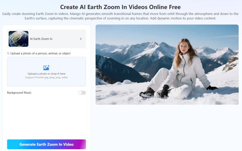 Mango AI Generates Zoom In to Earth Videos From Uploaded Photos