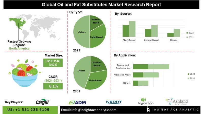 InsightAce Analytic Pvt. Ltd. announces the release of a market assessment report on the "Global Oil and Fat Substitutes  Market- (By Type (Carbohydrate-Based, Protein-Based, Lipid-Based), By Form (Powder, Liquid), By Source (Plant-Based, Animal-Based), By Application (Processed Meat, Bakery and Confectionery, Beverages, Convenience Food, Others)), By Region, Trends, Industry Competition Analysis, Revenue and Forecast To 2031."
