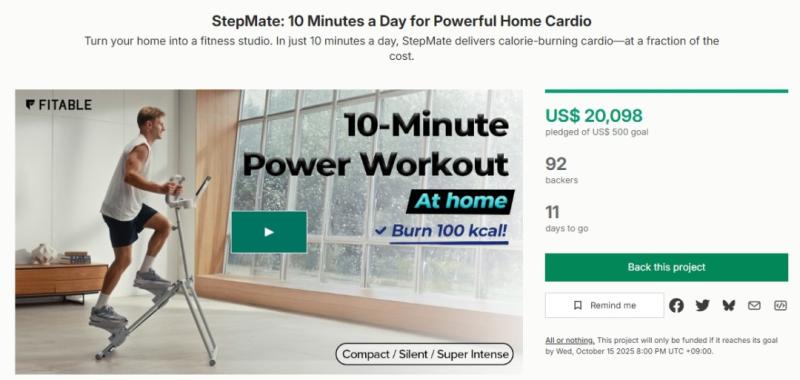 FITABLE, a forward-thinking home fitness brand, today announces the launch of its Kickstarter campaign for StepMate: 10 Minutes a Day for Powerful Home Cardio. Designed from the ground up to bring effective, low-impact cardio into the home without bulky equipment, StepMate is now accepting U.S. pledges, with shipping exclusively to U.S. backers.