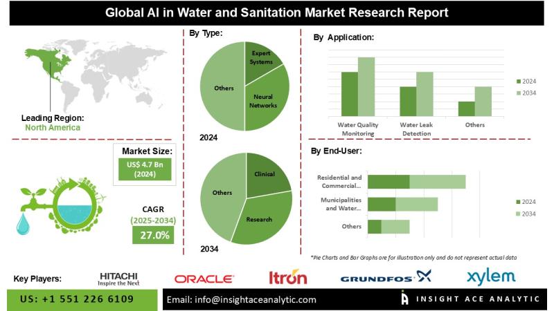 InsightAce Analytic Pvt. Ltd. announces the release of a market assessment report on the "Global AI in Water and Sanitation Market - (By Type (Machine Learning Algorithms, Natural Language Processing (NLP) Systems, Computer Vision Systems, Expert Systems, Neural Networks), By Application (Water Quality Monitoring, Water Leak Detection, Wastewater Treatment Optimization, Water Supply Management, Sanitation and Waste Management) By End-User (Municipalities and Water Authorities, Industrial Sector (Factories, Manufacturing, etc.), Residential and…