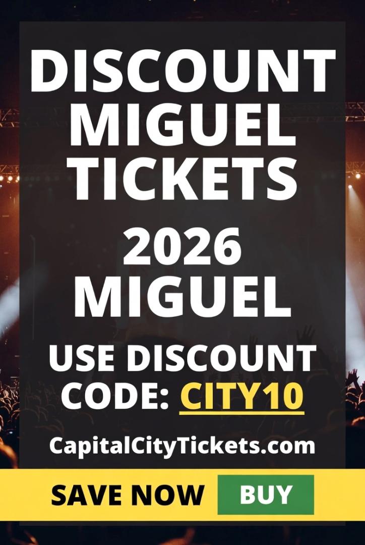 Score discounted Miguel 2026 concert tickets online! Use promo code CITY10 at CapitalCityTickets.com for instant savings, best seat availability, and exclusive deals. Check full tour dates, secure your tickets early, and don't miss the chance to see Miguel live in 2026-experience an unforgettable night of R&B hits and electrifying performances while saving big.