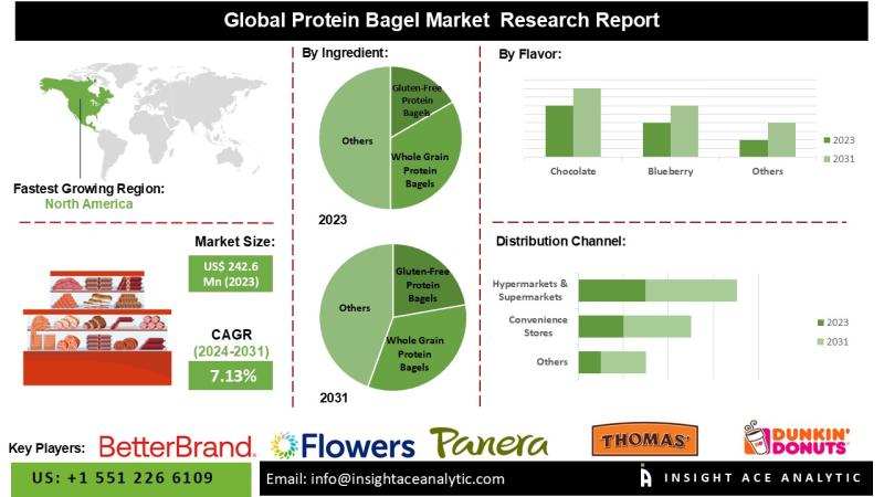 InsightAce Analytic Pvt. Ltd. announces the release of a market assessment report on the "Global Protein Bagel Market - (By Ingredient (Gluten-Free Protein Bagels, Whole Grain Protein Bagels, Low-Carb/Protein Bagels, Other Protein Bagels), By Flavor (Chocolate, Blueberry, Cinnamon, Plain, Others), By Distribution Channel (Hypermarkets & Supermarkets, Convenience stores, Online, Others)), Trends, Industry Competition Analysis, Revenue and Forecast To 2031."