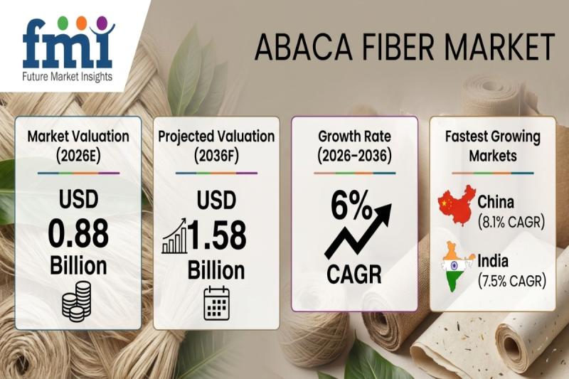 According to the latest analysis by Future Market Insights (FMI), the global shift toward sustainable and high-performance natural materials is accelerating the adoption of abaca fiber across industrial and consumer applications. The global Abaca Fiber Market is projected to grow from USD 0.88 billion in 2026 to USD 1.58 billion by 2036, reflecting a steady 6% CAGR over the forecast period.