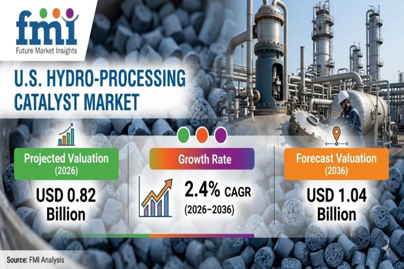 According to the latest analysis by Future Market Insights, the U.S. hydro-processing catalysts market is witnessing steady expansion as regulatory compliance and renewable fuel production reshape refinery operations. The market is projected to grow from USD 0.82 billion in 2026 to USD 1.04 billion by 2036.